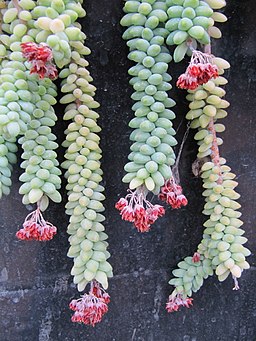 Sedum morganianum is one I’m eager to try. It is commonly known as donkey’s tail or burro’s tail. Like its common name, this sedum resembles a long tail and is usually grown trailing from a hanging basket, which helps with the drainage issue.
