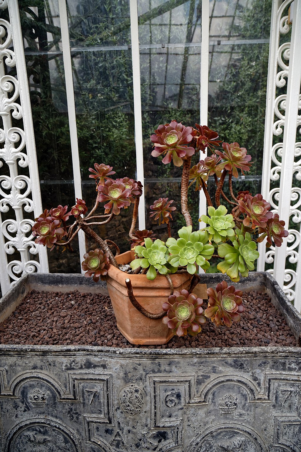 Echeveria derenbergii, commonly known as “painted lady,” also has small rosettes that produce many offshoots. Like most echeverias, it needs plenty of light. In the photo below, the “painted ladies” are blooming, but that’s probably because they’re in the care of a botanical garden that is providing the necessary conditions. Getting an indoor succulent to flower can be tricky. You may be able to bring cacti and succulents into bloom if you can re-create their native winter conditions. This requires good light, dry soil, and cool nights — which might be available on a windowsill.