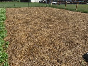 One circumstance where tilling soil may be useful is in starting a new bed. Loosening compacted soil and adding organic matter can be beneficial. However, sheet composting or lasagna mulching provides a non-dig alternative, using various organic materials, can be a good approach. It involves scalping the grass off the bed area and covering it with alternating layers of carbon and nitrogen rich materials. The layered material will cold-compost over a few months, providing a carbon-rich surface that helps soil organisms flourish and carry organic matter deeper into the ground. Crops can be planted directly into the surface material. Starting the process now should provide a planting-ready bed for warm weather vegetables next spring. The photo above shows a sheet mulched plot using a paper barrier on the soil, covered with 6 inches of decomposed arborist waste and 3 inches of straw. For a detailed description of the process, refer to the Garden Shed article Lasagna Mulching