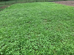 Best soil building practice today is keeping live roots in the soil, year-round. Cover crops are a recommended way to do this when other crops are not being grown. A diverse winter-hardy cover crop is a great soil builder. The photo above shows a crop that includes crimson clover, a legume that will add nitrogen, daikon radishes that will loosen compacted clay soil and annual rye grass for added root mass and vegetation. There is also some self-seeded buckwheat from the summer cover crop that will be winter killed but will add organic matter to the soil next spring so is a do-no-harm invader.