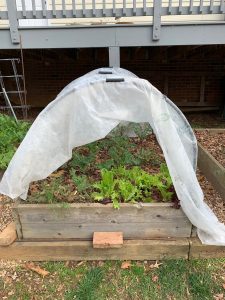 - Cover your plants: For better protection, cover the crops that aren’t cold hardy. Spun polyester row cover fabric is a proven choice, although gardeners use everything from newspapers to buckets to commercially available water-jacketed individual plant covers. Fabric cover protection varies from 2 to 6 degrees Fahrenheit depending on soil conditions and fabric used. Air space between cover and plants increases the protection over that obtained by simply laying the cover directly on the vegetation. Spun fabric covers let light and water through and can be left in place. Most other options need to be removed during the day after the temperature is above freezing. For more information on row covers please check out the article: Row Covers from the University of Maryland Extension.