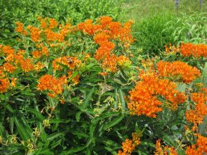 Long taproots help these Asclepsia tuberosa plants tolerate drought conditions. Taproots – Plants with taproots have a distinct advantage over plants with shallow root systems. When moisture is scarce, taproots are able to penetrate well below the surface of the soil in search of water.  The common grapevine is a classic example of this phenomenon. It is capable of sending its roots 20 feet down in unrestricted soils. Other examples of drought-tolerant plants with taproots include butterfly weed (Asclepias), false indigo (Baptisia), globe thistle (Echinops), and fall-blooming Anemone species.