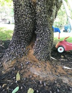 The SLF can cause extensive crop and tree damage.  Limp tree branches have been observed shortly after an infestation. In infested areas, the adult SLF gather in masses, covering tree trunks, patios, and the sides of houses. While they don’t bite, the SLF are attracted to and land on people, moving among them, making themselves a nuisance to be around.