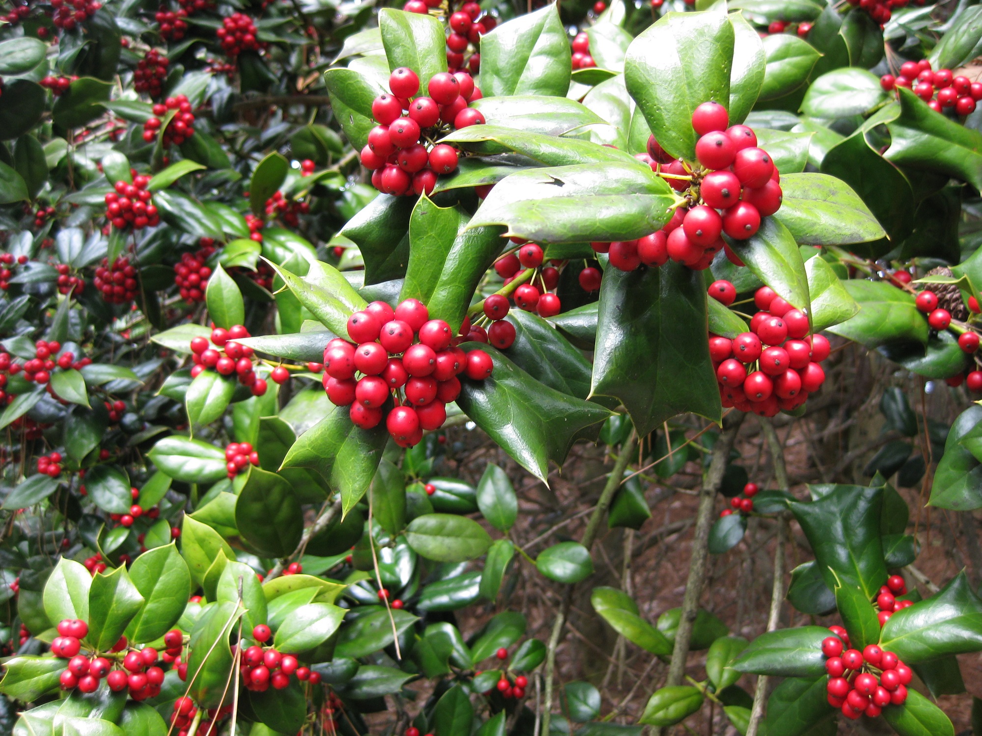 Winter color on Burford hollies at the Norfolk Botanical Garden - In mid-winter, conifers and broadleaf evergreens provide mass and substance to the landscape, transforming it from drab and sparse to rich and full. Deciduous trees and shrubs with fissured or colorful bark, unique growth habits, and persistent berries also provide plenty of mid-winter interest.