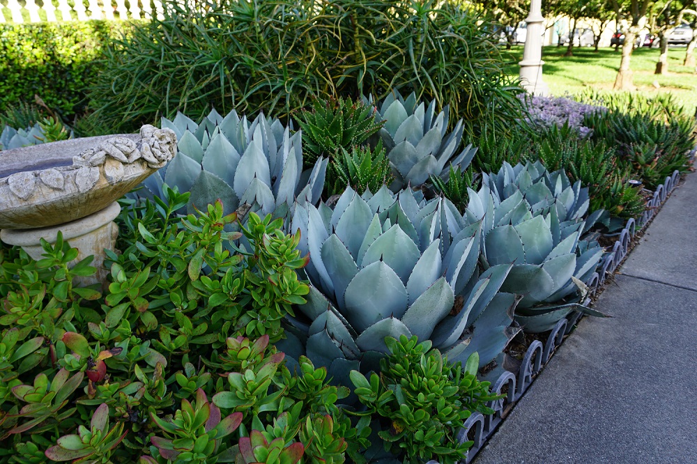 Jade plants in foreground display thick, waxy-coated drought-tolerant leaves. Waxy-coated leaves – All plants have a thin waxy coating called a cuticle on their leaves, but those plants that have evolved with a thicker waxy coating are better equipped to retain water by limiting transpiration. Examples include agave, ivy-leaved geranium, camellia, many citrus trees, and some houseplants, such as jade plant and schefflera.