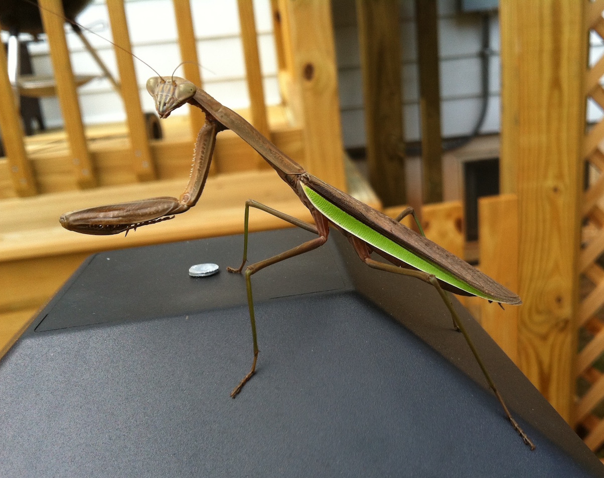 If you spot a praying mantis in your landscape, leave it alone. Whether you think of it as friend or foe, it is one of the more interesting insects in the garden. Either green or brown, they are large, stick-like creatures that blend in well with their surroundings and are sometimes hard to spot. A member of the mantid genus, this fascinating predator gets its common name from the way it holds its prominent front legs at an angle, suggesting it is praying. In the fall, the female lays her eggs in a small tan, frothy-looking, hardened case (called an ootheca). The eggs overwinter in the case and then hatch out around early May. Young praying mantids eat small insects whereas the mature versions tackle big insects, such as crickets, grasshoppers, cabbage moths, and stink bugs. Unfortunately, they make no distinction between bad bugs and beneficial ones and eagerly gobble up both. However, in general, they appear to do more good than harm in the environment.
