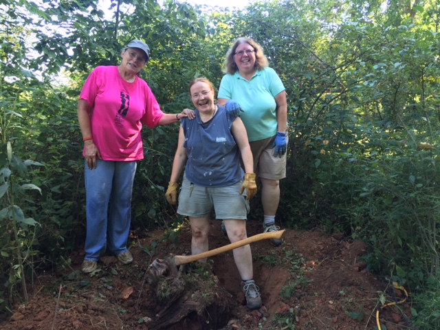 Marty, Aurora, and Mary preparing the site for John Austin’s tree memorial. Photo by Sarah